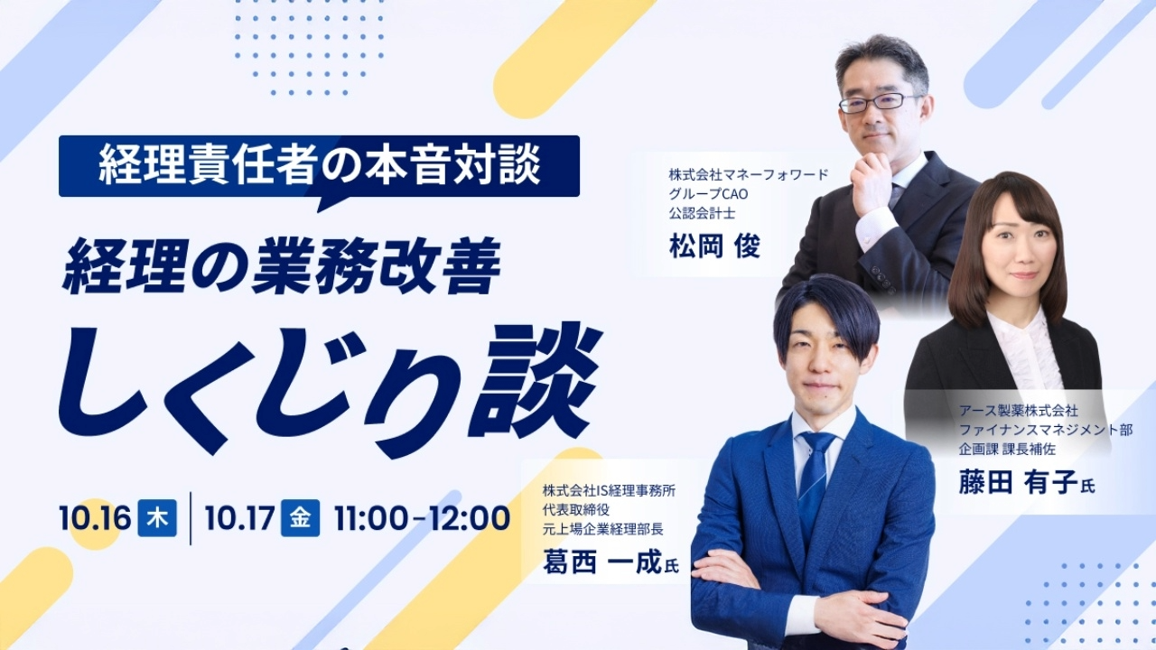 『経理責任者の本音対談!失敗から学ぶ、経理の業務改善しくじり談』セミナー開催のお知らせ