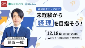 経理職へのキャリアチェンジを目指して簿記を勉強している方に向けて大好評のセミナーに弊社代表・葛西一成が登壇します。