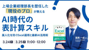 見やすくミスを防ぐファイル設計の考え方や、実務で押さえておきたい関数の使い方、さらにAIを活用したExcelスキル向上の実践ポイントについても紹介します。