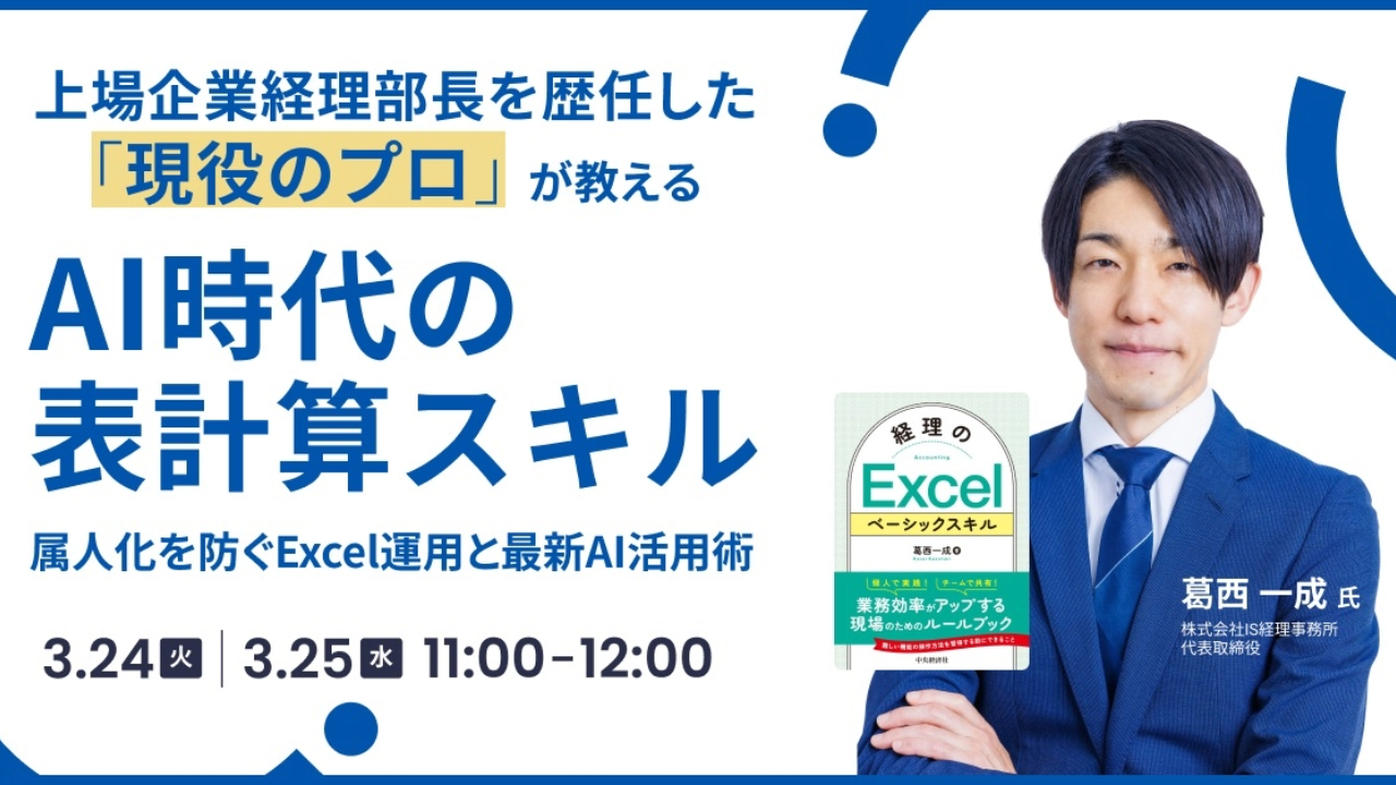 本セミナーでは、経理現場で実際に起こりがちなExcel運用の課題を整理しながら、チームで再現性高く使える「経理Excelの型」を解説します。
